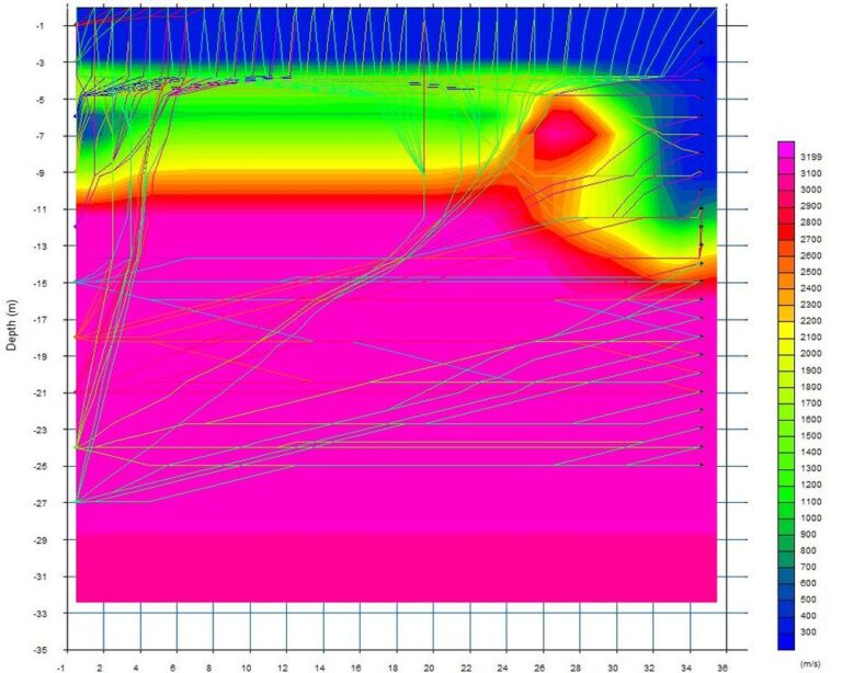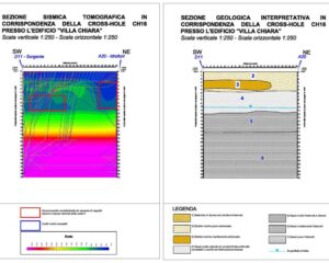 2 tomografie sismiche superficiali di 125 ml e n. 27cross-hole sismiche eseguite tra due fori a distanza variabile.