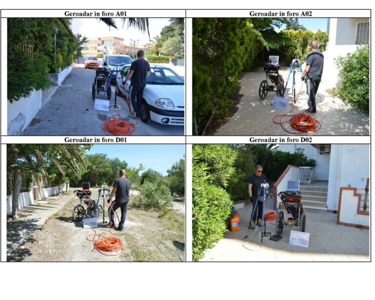 georadar di superficie per la ricerca dei sottoservizi e georadar in foro in tutti i sondaggi geognostici;