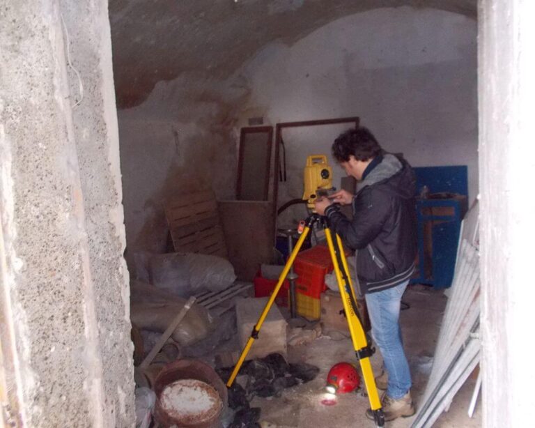 Tale approccio metodologico ha fatto emergere, dopo l’accesso in sicurezza alle cavità, la necessità di attuare un rilievo di dettaglio degli ambienti mediante tecnologia laser-scanner, indispensabile per: